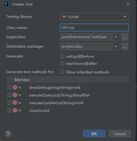 在需要单元测试的类中,鼠标右键选择Gernerate->Test之后选择JUnit4和所需要测试的函数。