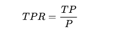 纵坐标:真阳性率(True Positive Rate, TPR),P是真实正样本的个数, TP是P个正样本中被分类器预测为正样本的个数。